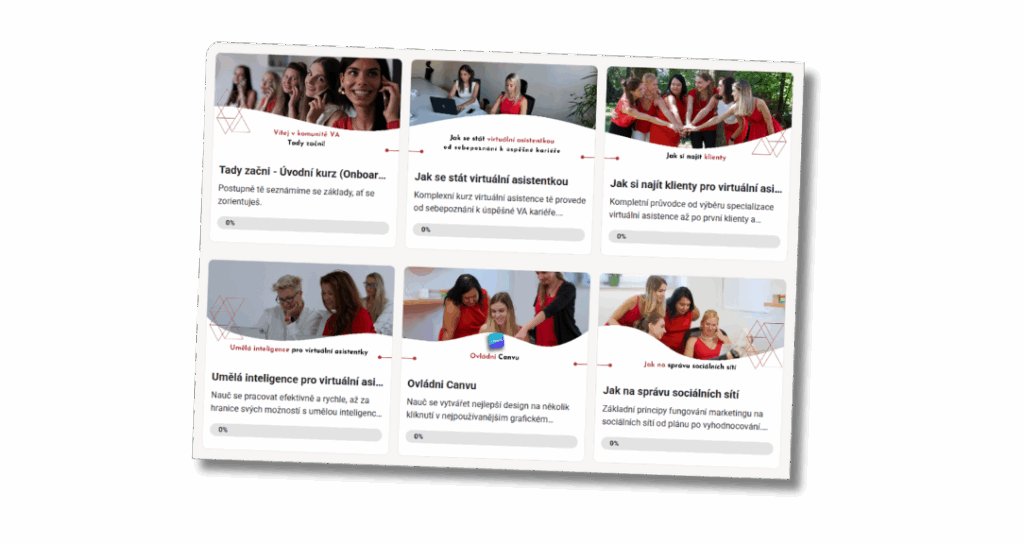 Všechny kurzy, webináře, mentoring i komunita virtuálních asistentek na jednom místě.